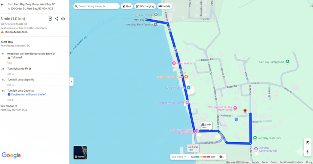 Driving from the Ferry to 126 Cedar St (Approx. 3 minutes)